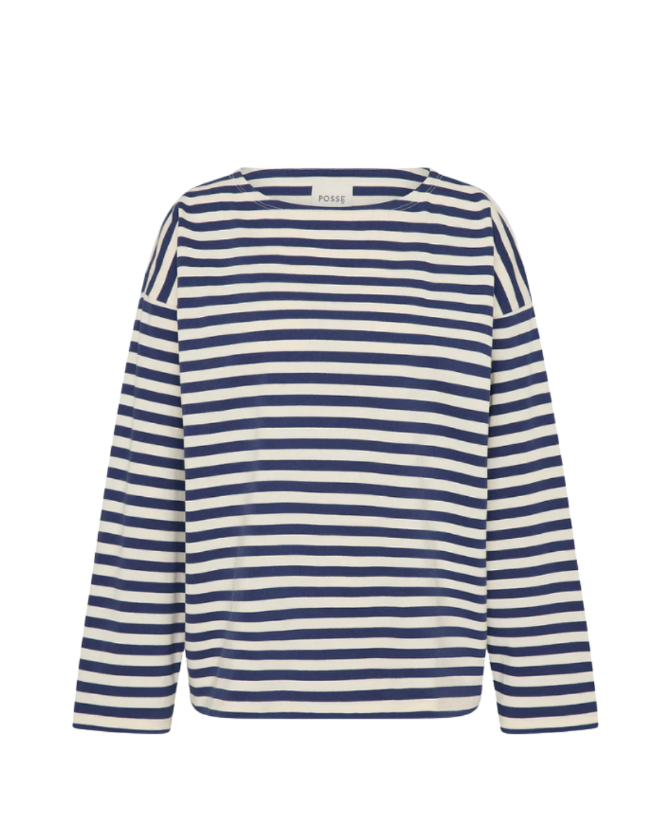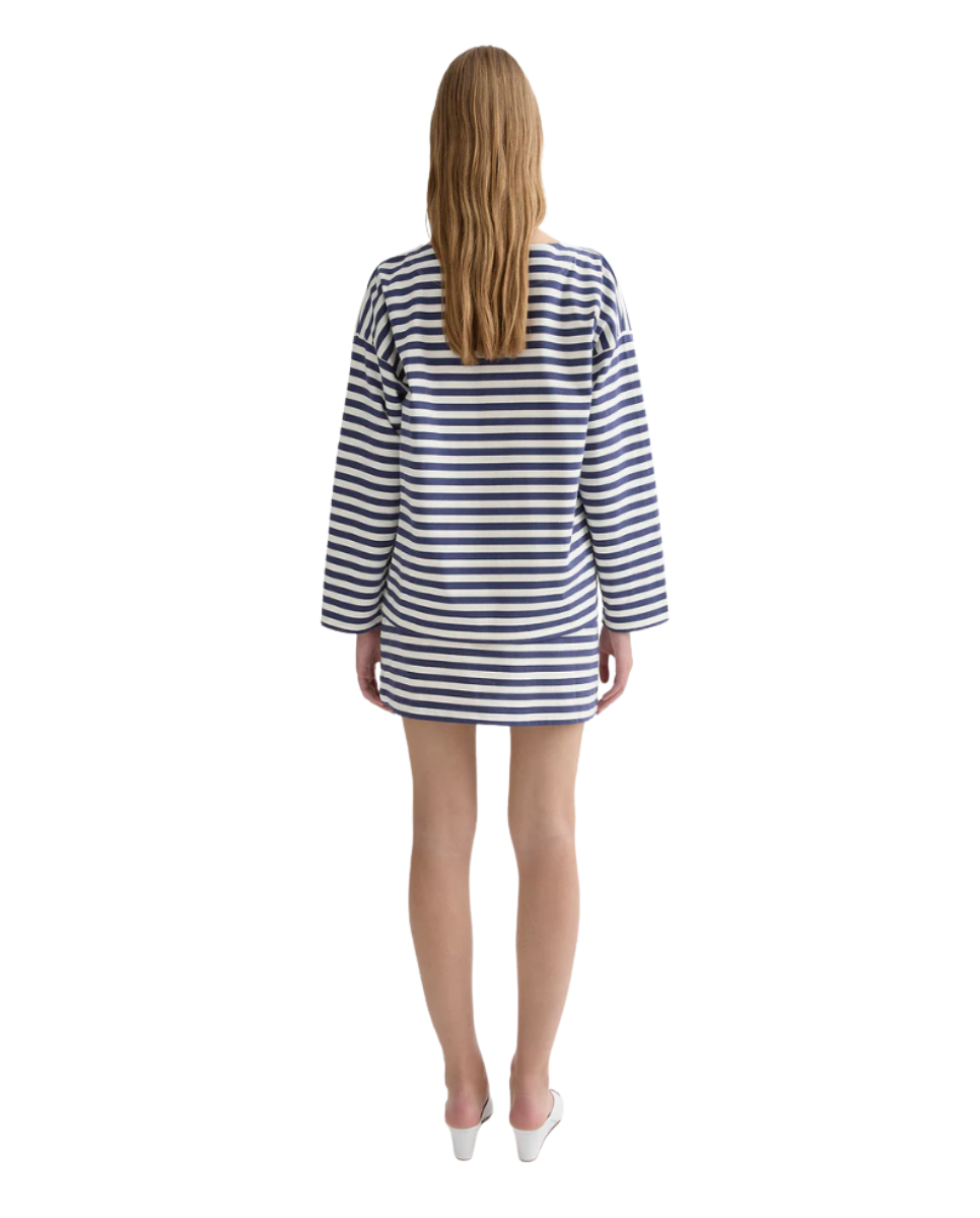 Crafted from 100% cotton, the Haisley Top is patterned in a timeless navy and ivory stripe. Designed for a boxy, relaxed fit, it features drop shoulders and long sleeves.