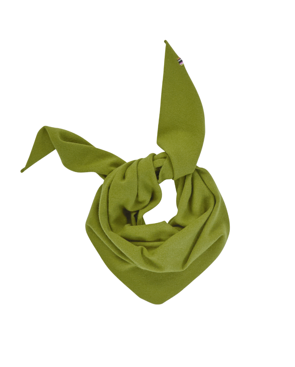 Triangle shaped cashmere bandana with rolling edges. This small cashmere scarf is the perfect universal accessory.