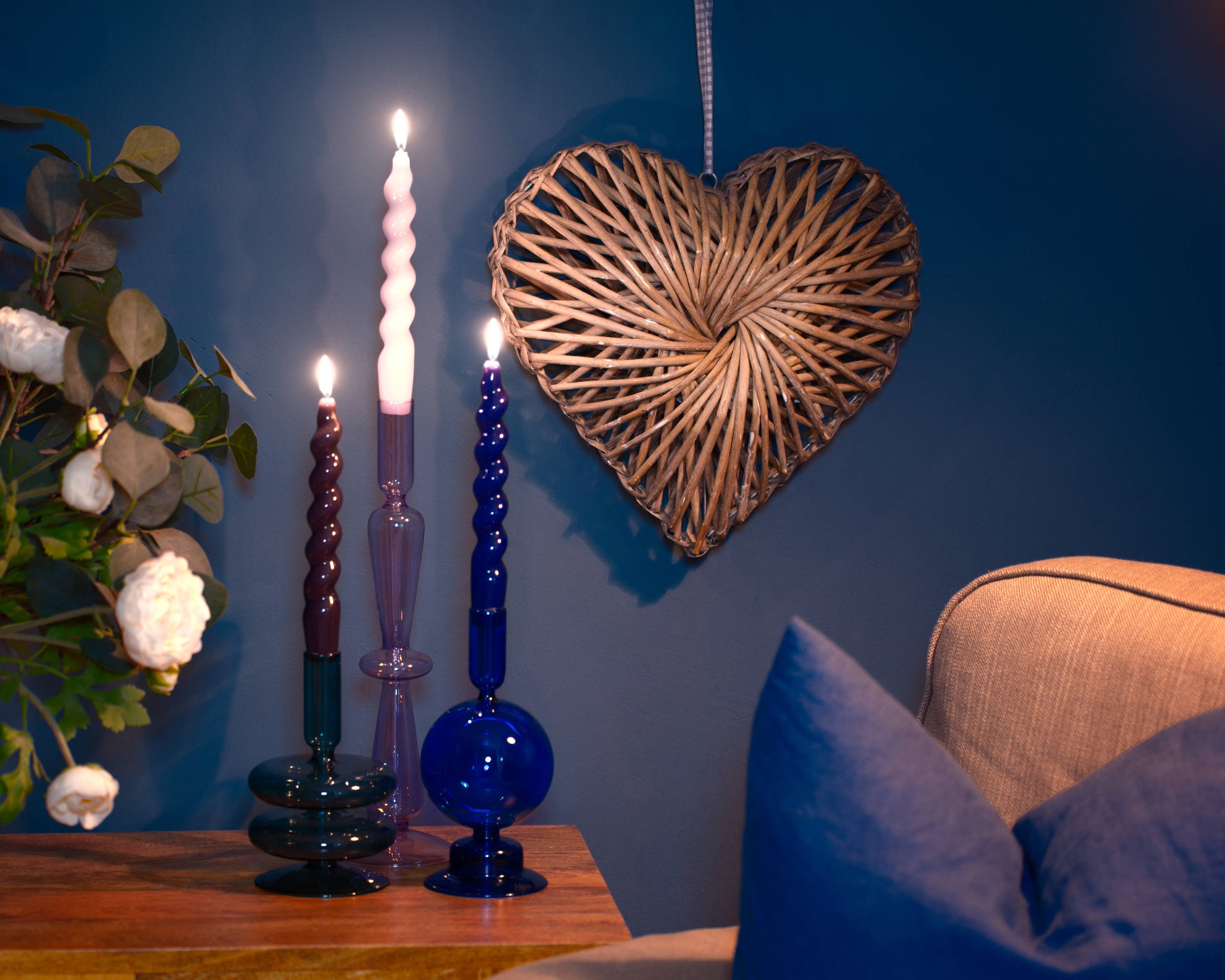 Make a statement with these decorative coloured glassware taper holders from MÆGEN (May-en), they are the perfect pair to our glossy twisted and spiral taper candles.