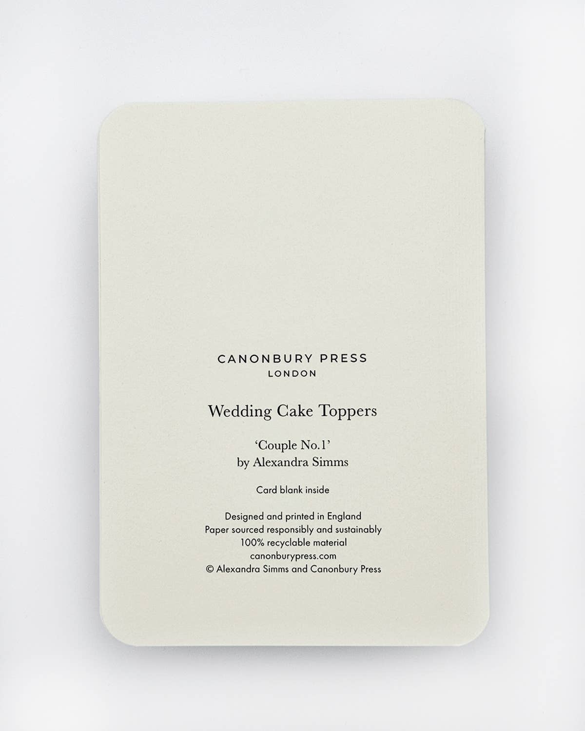 Luxury A6 greeting card, printed in England on Italian-milled paper. Hand finished with rounded corners and supplied with a matching envelope. Blank inside for your own message.